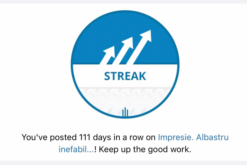 111 de zile consecutive de postare, intr-o zi de 11/11; si va continua paralel pana la inceput de decembrie… ador aceasta armonie; pur si simplu imi explodeaza in suflet, un fel de fericire…