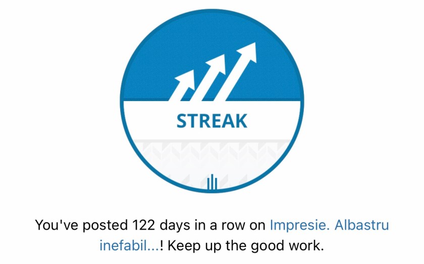 II. ieri si azi, 21-22 noiembrie, 121-122 de scrieri consecutive – o treime de an; zile de organizare, productivitate, gestionare a timpului si a listutzelor – pentru unii poate un nimic, pentru mine insa, motiv de mandrie si de zambet, si, poate, de fericire…