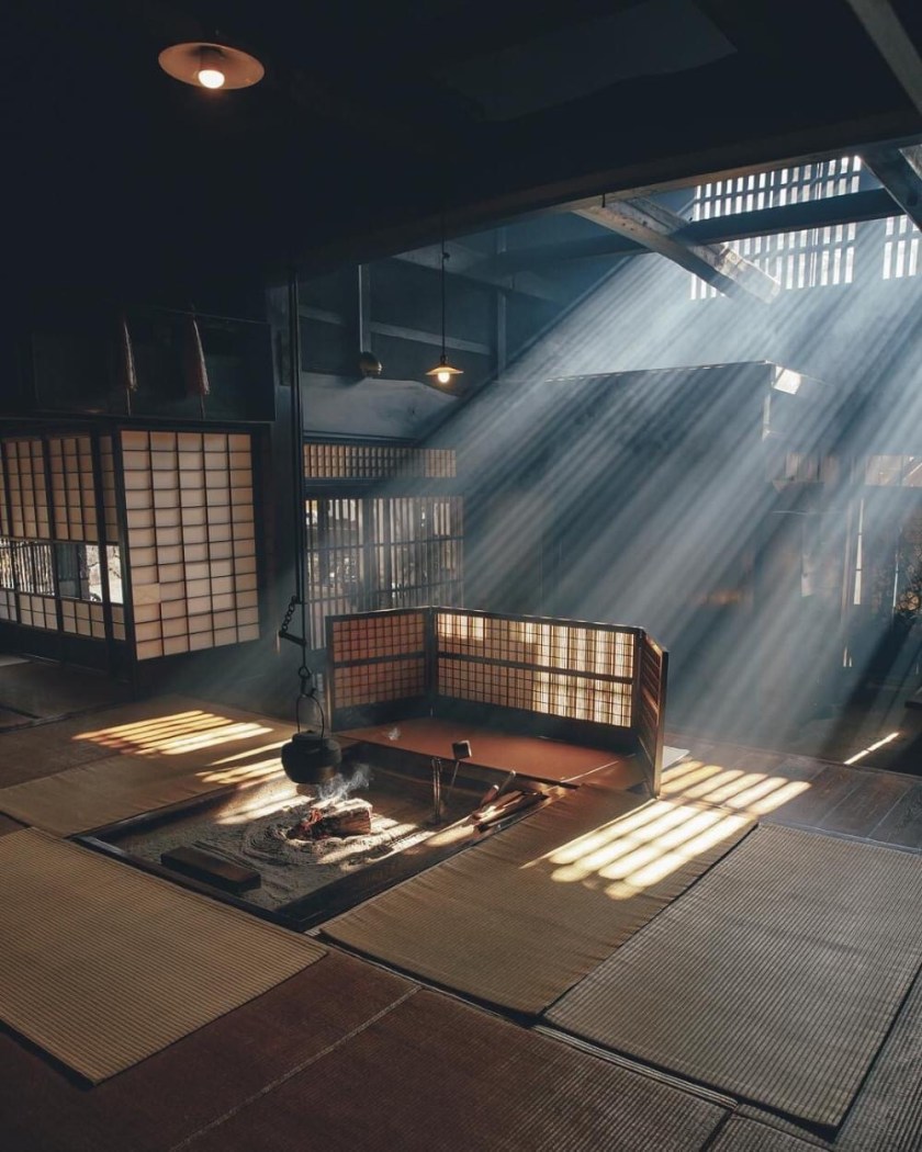 Beautiful Irori 囲炉裏 -hearth room with perfect lighting! Tsumago-juku, Nagano prefecture. 📷 Hiro Goto