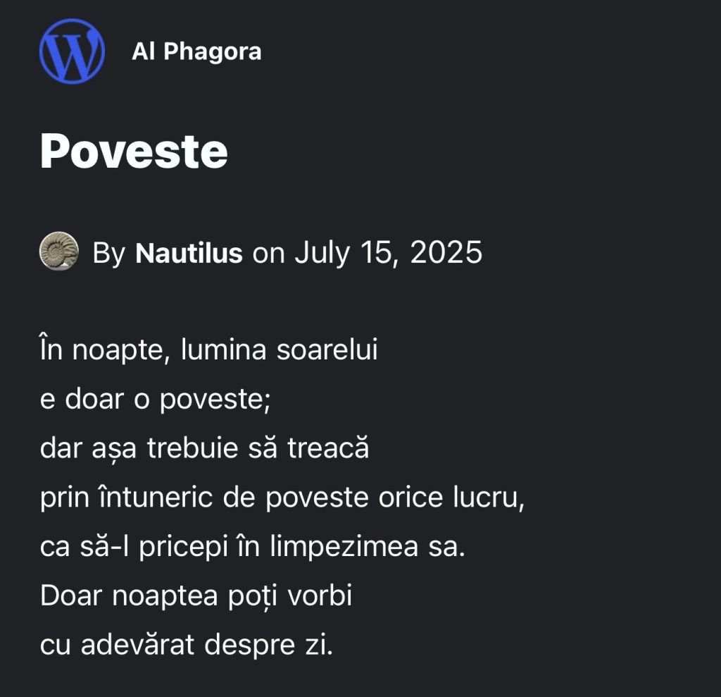 iar cu ochiii inchisi, pricep fraze si insemnatatea povestilor audible – ca si cum in eter, putinul pe care il stiu constient, intalneste amintirea demult cunoscuta a unor sensuri uitate…